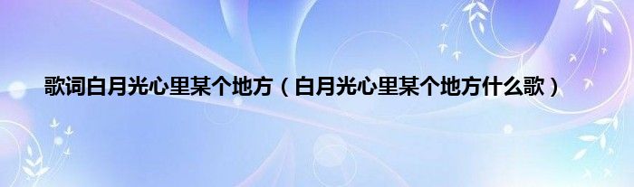 大家好,小问来为大家解答以上问题。歌词白月光心里某个地方,白月光心里某个地方什么歌这个很多人还不知道,现在让我们一起来看看吧!