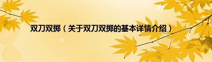 大家好我是小蝌蚪,双刀双掷,关于双刀双掷的基本详情介绍很多人还不知道,那么现在让我们一起来看看吧!
