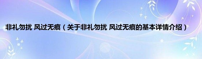 本文关于非礼勿扰 风过无痕的基本详情介绍就讲解完毕,希望对大家有所帮助。