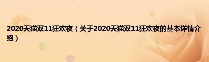 2020天猫双11狂欢夜(关于2020天猫双11狂欢夜的基本详情介绍)