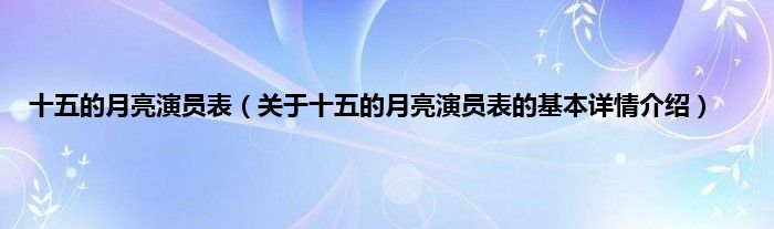 十五的月亮演员表(关于十五的月亮演员表的基本详情介绍)