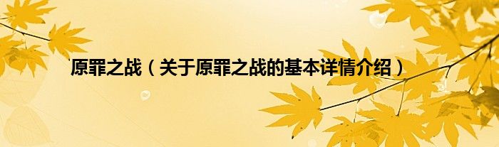 本文关于原罪之战的基本详情介绍就讲解完毕,希望对大家有所帮助。