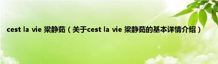 本文关于cest la vie 梁静茹的基本详情介绍就讲解完毕,希望对大家有所帮助。