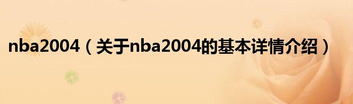 本文关于nba2004的基本详情介绍就讲解完毕,希望对大家有所帮助。