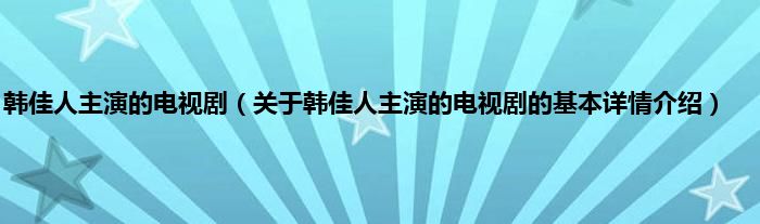 本文关于韩佳人主演的电视剧的基本详情介绍就讲解完毕,希望对大家有所帮助。