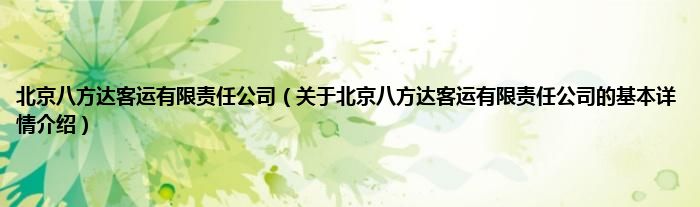本文关于北京八方达客运有限责任公司的基本详情介绍就讲解完毕,希望对大家有所帮助。