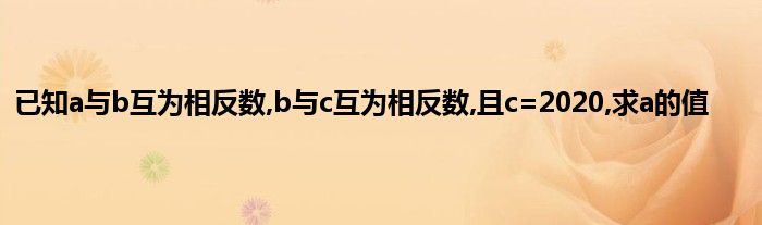 大家好,小问来为大家解答以上问题。已知a与b互为相反数,b与c互为相反数,且c=2020,求a的值这个很多人还不知道,现在让我们一起来看看吧!