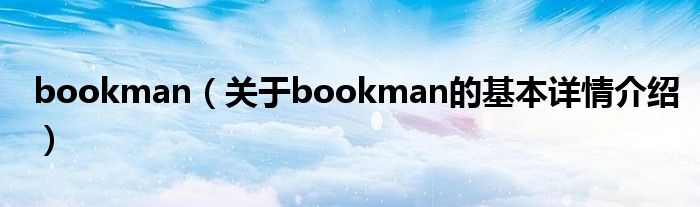 本文关于bookman的基本详情介绍就讲解完毕,希望对大家有所帮助。