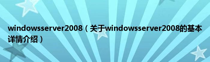 本文关于windowsserver2008的基本详情介绍就讲解完毕,希望对大家有所帮助。
