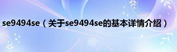 大家好我是小蝌蚪,se9494se,关于se9494se的基本详情介绍很多人还不知道,那么现在让我们一起来看看吧!