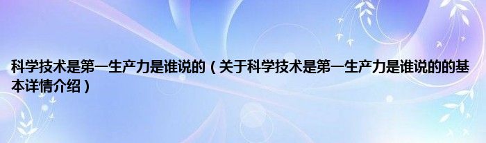 大家好我是小蝌蚪,科学技术是第一生产力是谁说的,关于科学技术是第一生产力是谁说的的基本详情介绍很多人还不知道,那么现在让我们一起来看看吧!
