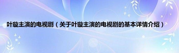 本文关于叶璇主演的电视剧的基本详情介绍就讲解完毕,希望对大家有所帮助。