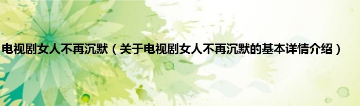 本文关于电视剧女人不再沉默的基本详情介绍就讲解完毕,希望对大家有所帮助。