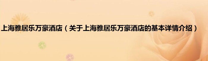 本文关于上海雅居乐万豪酒店的基本详情介绍就讲解完毕,希望对大家有所帮助。