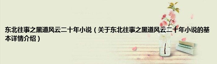 本文关于东北往事之黑道风云二十年小说的基本详情介绍就讲解完毕,希望对大家有所帮助。