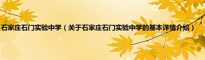 本文关于石家庄石门实验中学的基本详情介绍就讲解完毕,希望对大家有所帮助。