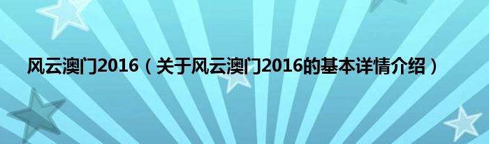 本文关于风云澳门2016的基本详情介绍就讲解完毕,希望对大家有所帮助。