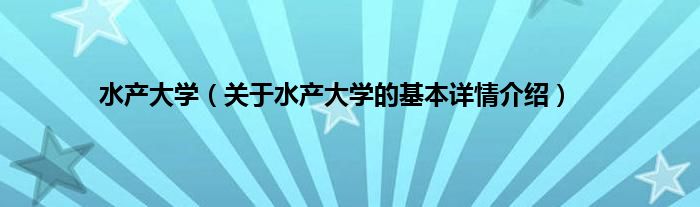 本文关于水产大学的基本详情介绍就讲解完毕,希望对大家有所帮助。