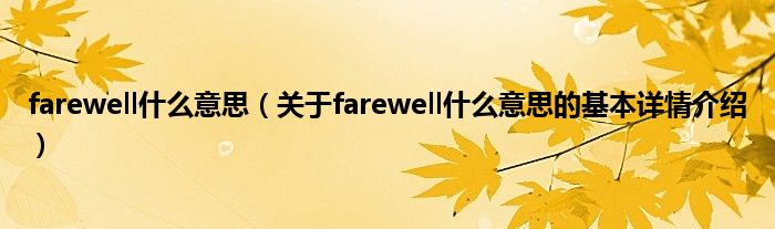 本文关于farewell什么意思的基本详情介绍就讲解完毕,希望对大家有所帮助。