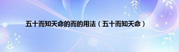 以上就是【五十而知天命的而的用法,五十而知天命】相关内容。