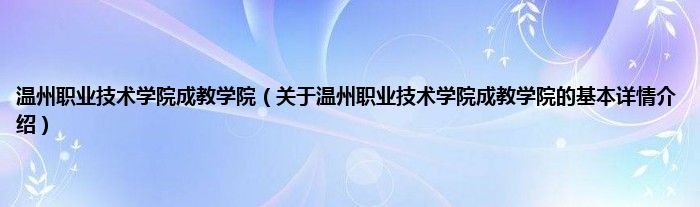 本文关于温州职业技术学院成教学院的基本详情介绍就讲解完毕,希望对大家有所帮助。
