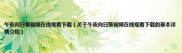 本文关于午夜向日葵视频在线观看下载的基本详情介绍就讲解完毕,希望对大家有所帮助。