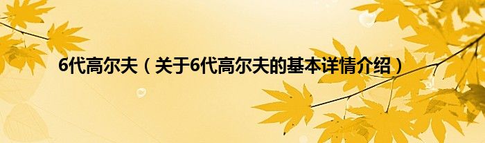 本文关于6代高尔夫的基本详情介绍就讲解完毕,希望对大家有所帮助。
