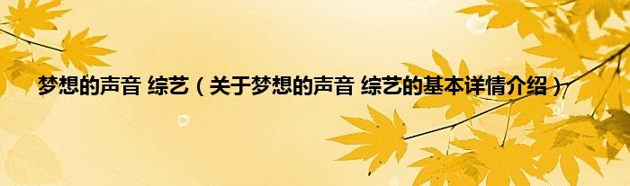 本文关于梦想的声音 综艺的基本详情介绍就讲解完毕,希望对大家有所帮助。