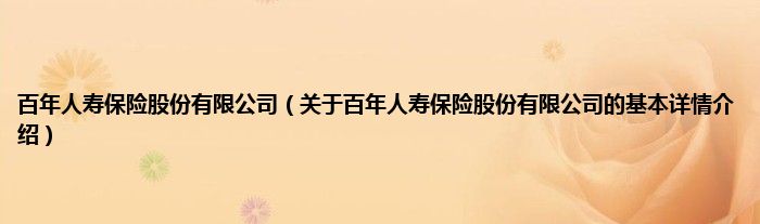 本文关于百年人寿保险股份有限公司的基本详情介绍就讲解完毕,希望对大家有所帮助。