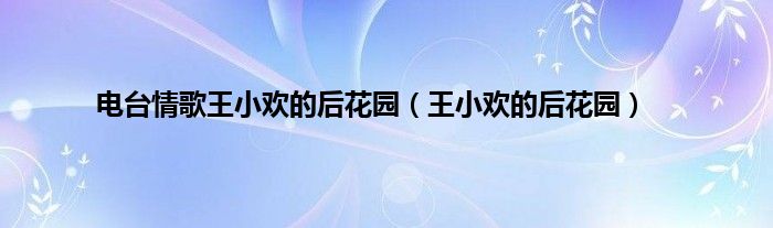 大家好,小问来为大家解答以上问题。电台情歌王小欢的后花园,王小欢的后花园这个很多人还不知道,现在让我们一起来看看吧!
