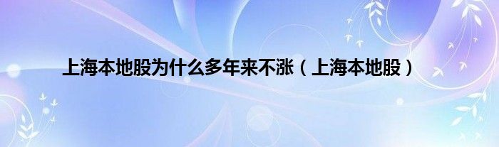 大家好,小问来为大家解答以上问题。上海本地股为什么多年来不涨,上海本地股这个很多人还不知道,现在让我们一起来看看吧!