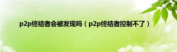 大家好,小问来为大家解答以上问题。p2p终结者会被发现吗,p2p终结者控制不了这个很多人还不知道,现在让我们一起来看看吧!