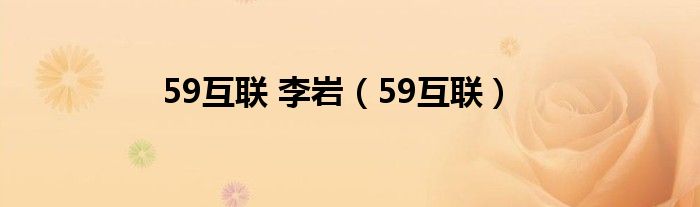 大家好,小问来为大家解答以上问题。59互联 李岩,59互联这个很多人还不知道,现在让我们一起来看看吧!