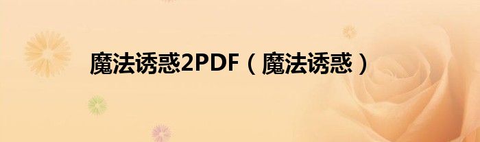 大家好,小问来为大家解答以上问题。魔法诱惑2PDF,魔法诱惑这个很多人还不知道,现在让我们一起来看看吧!