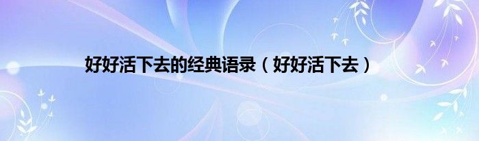 大家好,小问来为大家解答以上问题。好好活下去的经典语录,好好活下去这个很多人还不知道,现在让我们一起来看看吧!