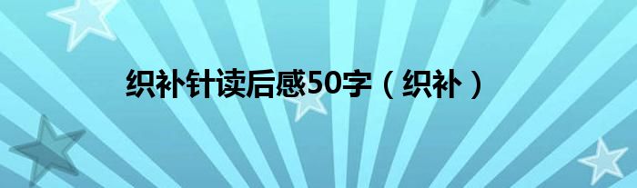 大家好,小问来为大家解答以上问题。织补针读后感50字,织补这个很多人还不知道,现在让我们一起来看看吧!