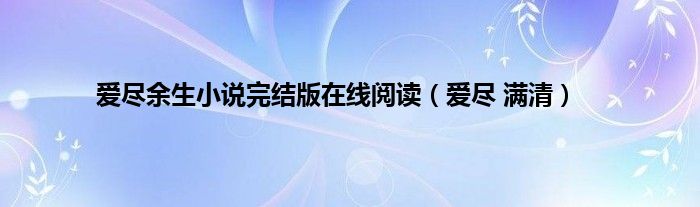 大家好,小问来为大家解答以上问题。爱尽余生小说完结版在线阅读,爱尽 满清这个很多人还不知道,现在让我们一起来看看吧!