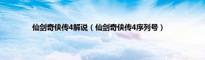 大家好,小问来为大家解答以上问题。仙剑奇侠传4解说,仙剑奇侠传4序列号这个很多人还不知道,现在让我们一起来看看吧!