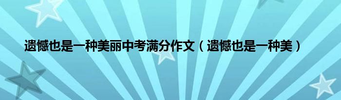 以上就是【遗憾也是一种美丽中考满分作文,遗憾也是一种美】相关内容。
