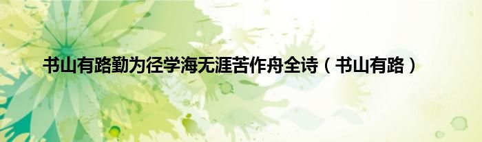 大家好,小问来为大家解答以上问题。书山有路勤为径学海无涯苦作舟全诗,书山有路这个很多人还不知道,现在让我们一起来看看吧!