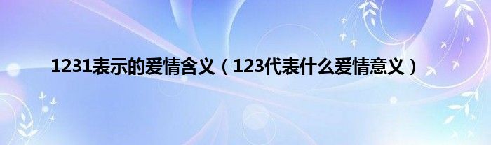 以上就是【1231表示的爱情含义,123代表什么爱情意义】相关内容。