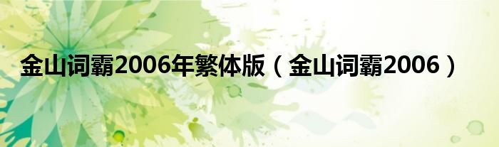 大家好,小问来为大家解答以上问题。金山词霸2006年繁体版,金山词霸2006这个很多人还不知道,现在让我们一起来看看吧!