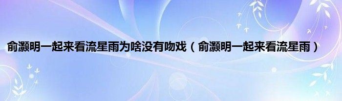 俞灏明一起来看流星雨为啥没有吻戏(俞灏明一起来看流星雨)