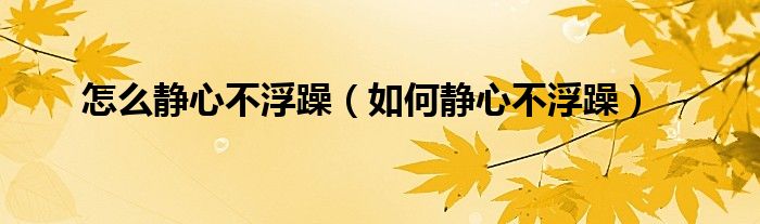 以上就是【怎么静心不浮躁,如何静心不浮躁】相关内容。