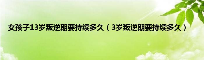 以上就是【女孩子13岁叛逆期要持续多久,3岁叛逆期要持续多久】相关内容。