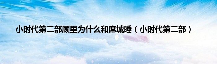 大家好,小问来为大家解答以上问题。小时代第二部顾里为什么和席城睡,小时代第二部这个很多人还不知道,现在让我们一起来看看吧!