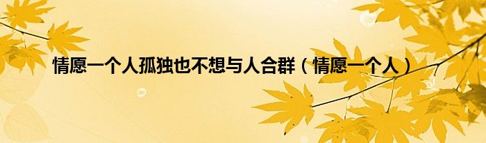 大家好,小问来为大家解答以上问题。情愿一个人孤独也不想与人合群,情愿一个人这个很多人还不知道,现在让我们一起来看看吧!