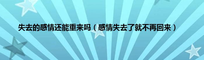 大家好,小问来为大家解答以上问题。失去的感情还能重来吗,感情失去了就不再回来这个很多人还不知道,现在让我们一起来看看吧!
