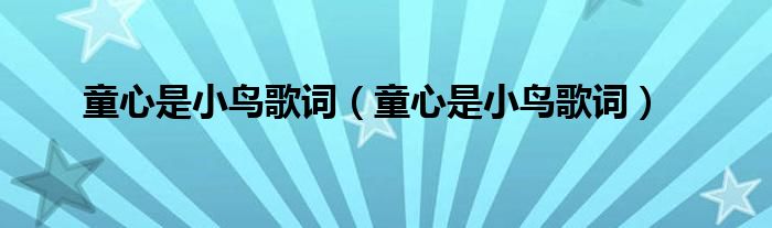 大家好,小问来为大家解答以上问题。童心是小鸟歌词,童心是小鸟歌词这个很多人还不知道,现在让我们一起来看看吧!