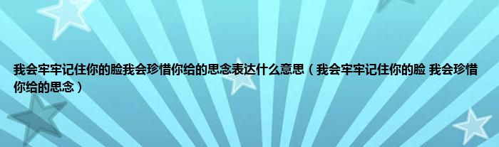 以上就是【我会牢牢记住你的脸我会珍惜你给的思念表达什么意思,我会牢牢记住你的脸 我会珍惜你给的思念】相关内容。
